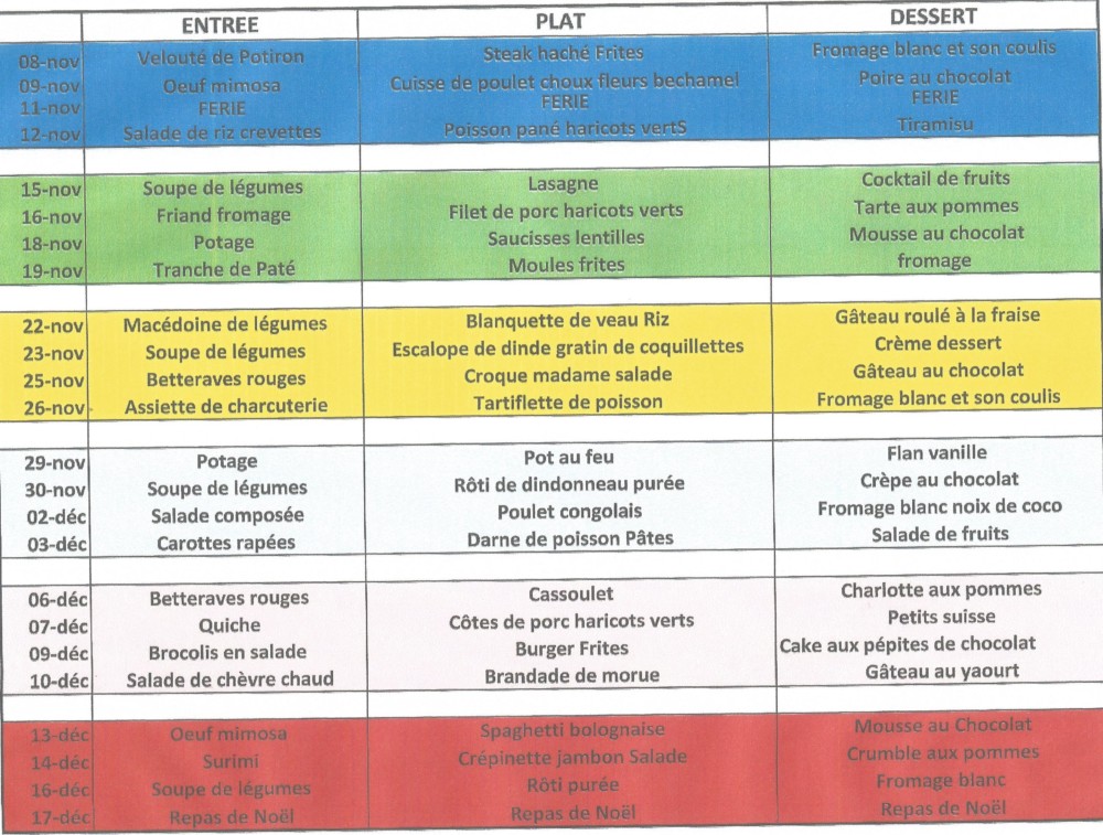 MENUS CANTINE